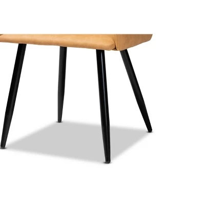 Enhance your dining space with the inviting embrace of the Eris dining chair. Made in China, the Eris is composed of a metal frame and fitted with a sleek faux leather upholstered seat. Padded with foam for plush comfort, the curved backrest extends to form ergonomic armrests for added relaxation. Requiring assembly, the Eris is supported by angled legs for a chic, mid-century look. A unique combination of lavish comfort and striking design, the Eris dining chair is an easy addition to any home.