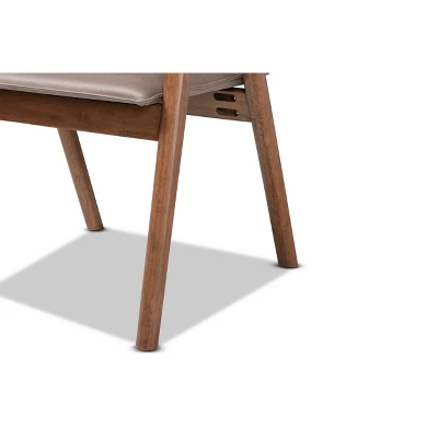 The unique, elegant design of the Marcena dining chair is sure to leave an impression in your home. Made in Malaysia, the Marcena is crafted from walnut brown finished wood that adds an air of warmth to any space. An elegant button-tufted pillow adds a contemporary touch, while plush foam padding and smooth imitation leather ensure superb comfort with every meal. Requiring assembly, the sloping armrests of the Marcena stretch into angled legs for stable support in ergonomic style. A stylish, streamlined addition, the Marcena dining chair enhances any dining experience.