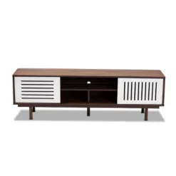 Meike Two-Tone Wood TV Stand For TVs Up To 70″ Walnut/White – Baxton Studio