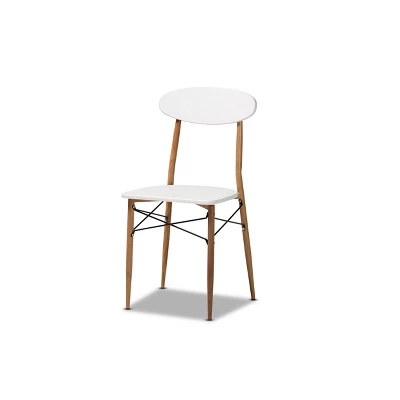 Add retro charm to your dining space with the Wayne dining set. Made in China, this set includes four dining chairs and one dining table. Constructed from metal overlaid with a walnut wood grain effect finish, the tabletop and seats feature a contrasting white wood grain effect finish that lends a cool, contemporary look. Black crisscross support bars add even more visual interest. Requiring assembly, each piece features angled legs for a mid-century inspired aesthetic. The compact, minimalist design of the Wayne conveys a light, open feel and allows it to easily fit within smaller dining spaces. Simple yet stylish, the Wayne dining set is an excellent addition to any home.