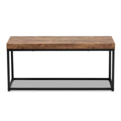 Banner Fabric Upholstered And Wood Accent Bench – Light Brown/Oak Brown – Baxton Studio