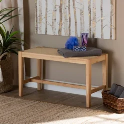 Corey Fabric Upholstered And Wood Dining Bench – Baxton Studio