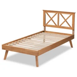 Helsa Mid-Century Modern Platform Bed Walnut/Brown/Gray – Baxton Studio