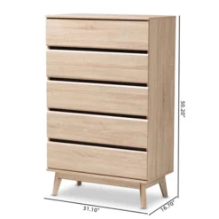 Maison Wood 5 Drawer Storage Chest Oak Brown – Baxton Studio