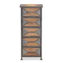 Mirren Light Oak 5 Drawer Chest Brown/Dark Gray – Baxton Studio