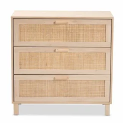 Sebille Wood With Natural Rattan 3 Drawer Storage Chest Light Brown – Baxton Studio