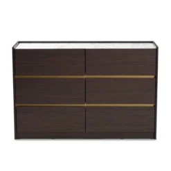 Walker Wood 6 Drawer Dresser With Faux Marble Top Dark Brown/Marble/Gold – Baxton Studio