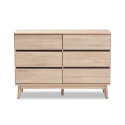 Mirren Light Oak 6 Drawer Dresser Brown, Dark Gray – Baxton Studio
