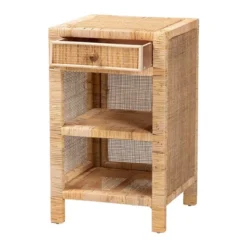 Bella Mahogany Wood And Natural Rattan 1 Drawer Nightstand Natural Brown – Baxton Studio