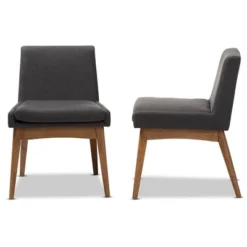 Set Of 2 Nexus Mid Century Modern Walnut Wood Fabric Upholstered Dining Side Chair – Baxton Studio