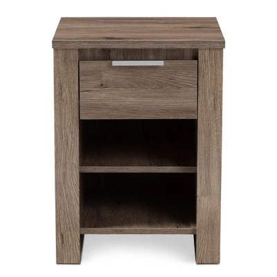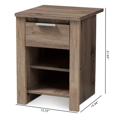 The Laverne nightstand is an essential piece of furniture that is both charming and simple. The modern and contemporary-inspired design is exemplified in the rectangular, geometric silhouette. The Laverne is finished in a natural oak to give you a hint of rustic and natural vibes. The nightstand features a convenient top drawer, which rolls out smoothly on slides. The Laverne also features two open shelves beneath the top drawer. The minimalist nightstand with its neutral coloring, will be easy to coordinate with the decor in your bedroom or guest room. The Laverne can even serve as additional storage in your entryway, living room, or closet. Made in Malaysia, the nightstand requires assembly. Dimensions: 21.65″ High x 15.75″ Wide x 15.94″ Deep