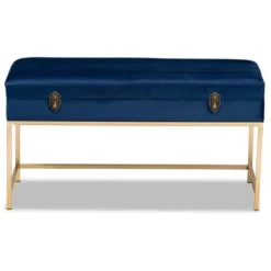 Aliana Fabric And Metal Ottoman Navy Blue/Gold – Baxton Studio