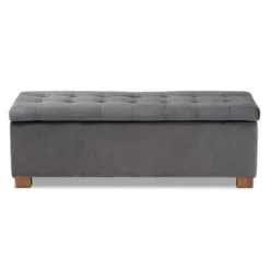 Roanoke Velvet Upholstered Grid Tufted Storage Ottoman Bench – Baxton Studio