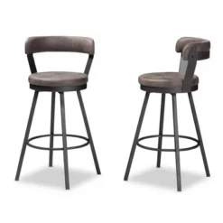 Set Of 2 Arcene Antique Faux Leather Swivel Barstools Gray/Black – Baxton Studio