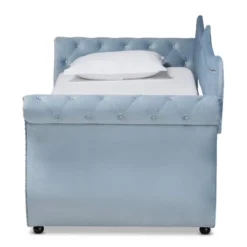 Twin Abbie Velvet Tufted Daybed With Trundle Light Blue – Baxton Studio