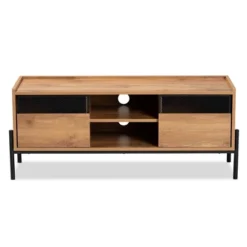 Tasman Wood And Metal 2 Door TV Stand For TVs Up To 45″ Natural Brown/Black – Baxton Studio