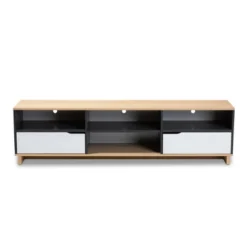 Reed 2 Drawer Wood TV Stand For TVs Up To 75″ White/Oak – Baxton Studio