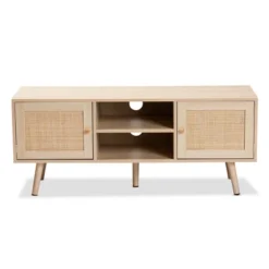 Sebille Wood With Natural Rattan 2 Door TV Stand For TVs Up To 45″ Light Brown – Baxton Studio