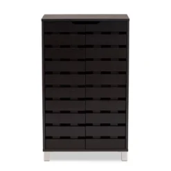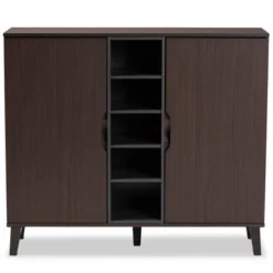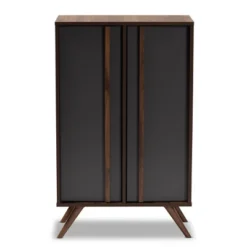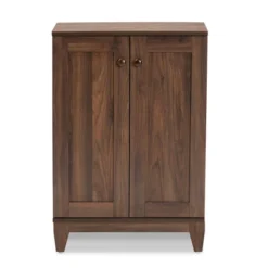 2 Door Meike Two-Tone Wood Shoe Cabinet Walnut/White – Baxton Studio