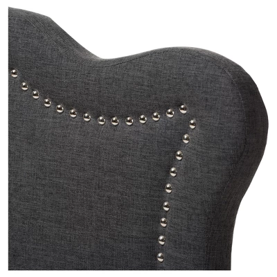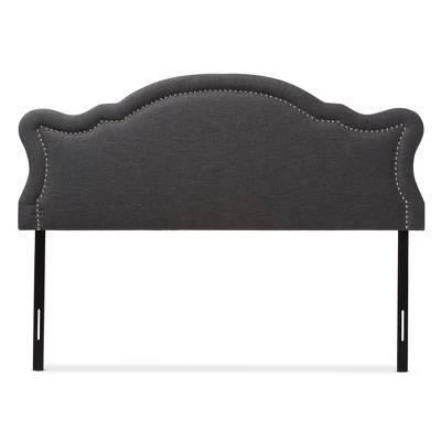 Create a romantic look in your boudoir with the Avery fabric upholstered headboard. Featuring elegant curved design for a classic and romantic feel, the Avery is trimmed with silver nail heads along the edges for a glamour look. Fully upholstered in durable polyester fabric, the headboard is constructed of quality rubberwood frame and leg supports for strength and sturdiness. The wood posts, with 5-level adjustable pre-drilled holes attaching to the headboard and 2-level adjustable attaching to the bed frame, allowing easy configuration of the height of your bed and the leg supports are invisible once set up. Traditional adjustable metal bed frame such as Leggatt and Platt bed frame will work well with the headboard. Cushioned headboard offers softness and shape, providing a comfortable leaning space while you sit up. Made in Malaysia, the headboard requires assembly.