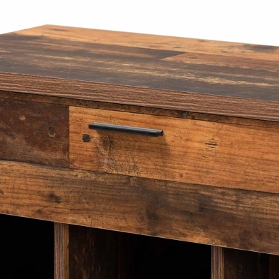The robust design of the Ranger sideboard effortlessly accommodates the modern dining room. Made in Malaysia, this sideboard is crafted from sturdy wood. One large drawer easily organizes kitchen utensils while one spacious shelf behind the doors offers secure storage for larger cookware. Requiring assembly, the Ranger is equipped with three wine bottle cubbies to conveniently store small collections. Slim metal handles allow the natural grain of the wood to stand out, making the Ranger sideboard an impressive upgrade to dining room capability.