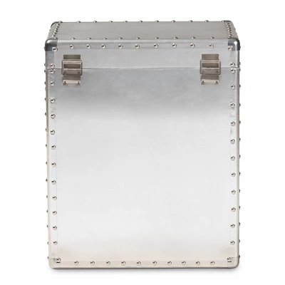 Bring chic industrial style into your space with the Serge cabinet. Constructed from wood and metal, the Serge features a unique lift-top compartment with ample storage space. Two drawers provide additional space to keep items organized. Polished silver metal drawer handles add a sleek touch. Inspired by vintage storage trunks, the Serge is embellished with rivets and corner protectors. This cabinet is well suited for a living room or entryway. The Serge cabinet is made in China and will arrive fully assembled. Dimensions: 23.23″ High x 19.09″ Wide x 13.98″ Deep; Drawer: 14.57″ High x 10.83″ Wide x 4.72″ Deep; Inner Shelf: 6.89″ High x 17.72″ Wide x 12.6″ Deep;