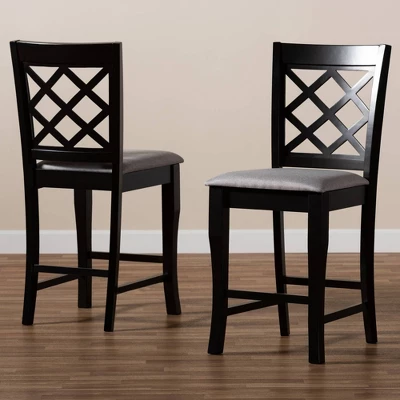 A fusion of traditional design elements and modern craftsmanship make the Alora counter stool a stunning addition to any dining space. This solid oak wood chair displays a sleek espresso brown finish that complements the light polyester fabric upholstery. Padded with foam for the utmost comfort as you enjoy long dinners, the Alora features a striking cut-out back for enhanced visual appeal. Constructed at counter height, the Alora is suitable for use with kitchen counters and pub tables. The Alora counter stool is made in Malaysia and requires assembly.