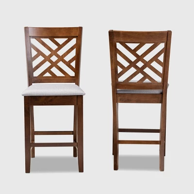Set Of 2 Caron Fabric Upholstered Wood Counter Height Pub Chair Set Gray/Walnut – Baxton Studio